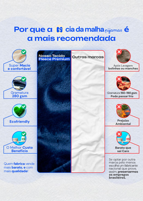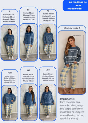 Material macio confeccionado em lã 100% poliéster premium, o conjunto de pijama proporciona uma sensação supermacia.