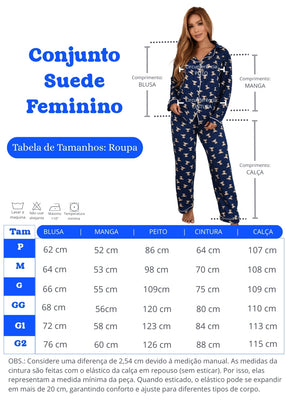 Nossos pijamas em suede são leves, confortáveis e com caimento suave, ideais para a meia estação.