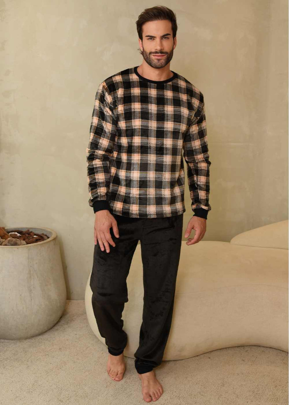 Descricao Pijama Masculino Inverno Adulto Fleece Plush Soft Quentinho New